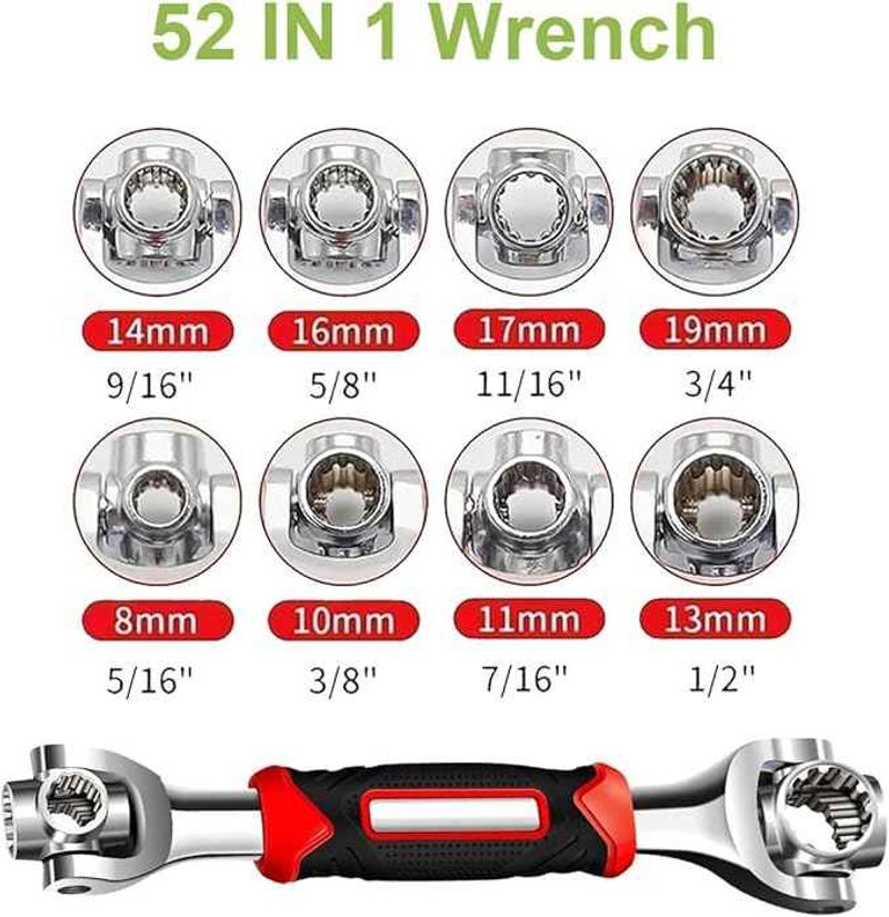 52 1 Socket Steel Wrench 360 Degree Rotating Head Universal Rubber Handle Multi-Function Tool for Home Bicycle OEM Box
