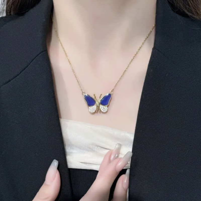Let this exquisite, mesmerizing temperature-changing butterfly necklace become the focal point of your stylish ensemble. Crafted with unique thermochromic technology, this delicate pendant effortlessly transitions between captivating hues as your body temperature subtly shifts, creating a dreamlike dancing butterfly effect on your skin.