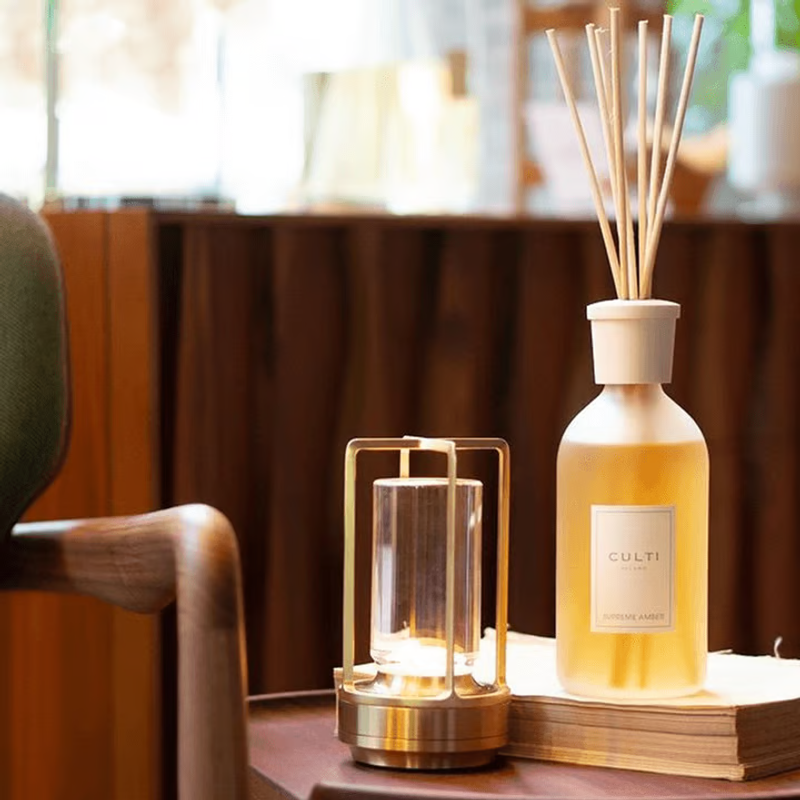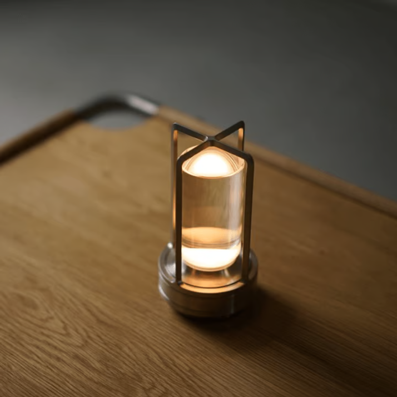 The lamp's form is carved out of solid metal materials like aluminum. This meticulous carving contributes to the lamp's refined look, highlighting its premium appeal and intricate detailing.