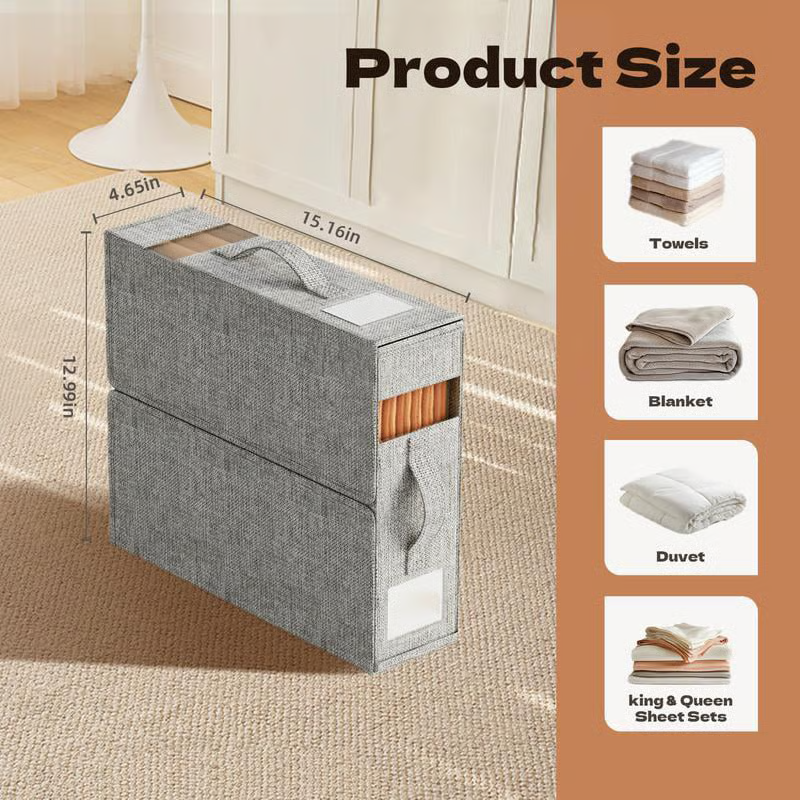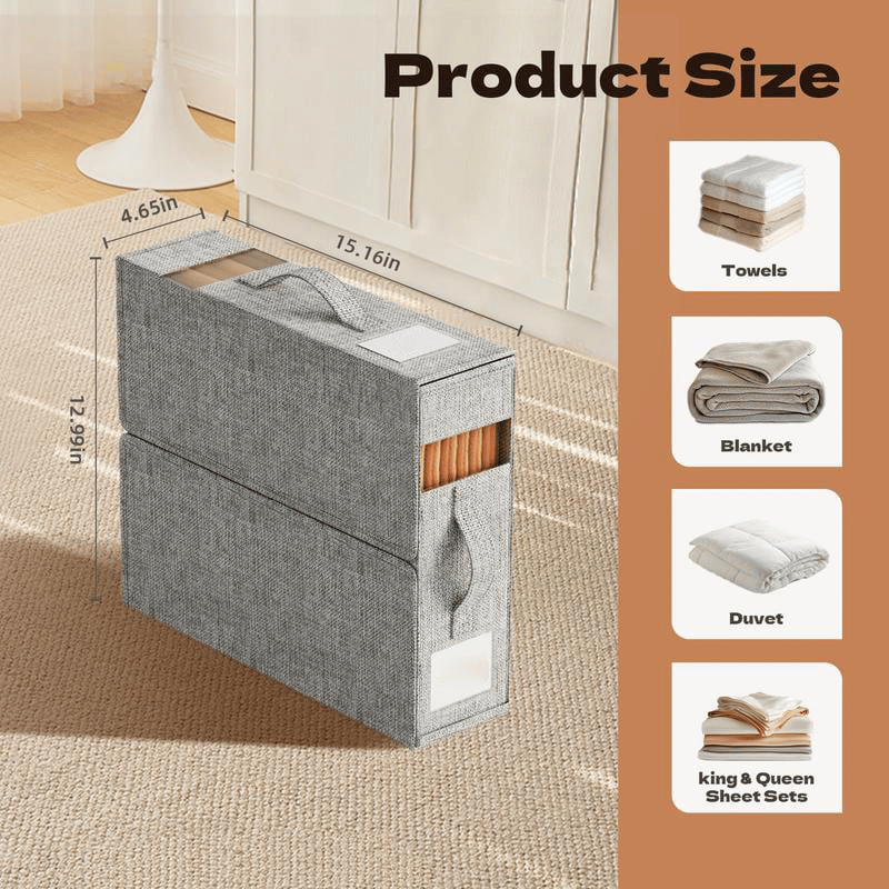 ❤️ Stop digging through piles! Our organizer box gives instant visibility and access to sheets, duvets, or seasonal linens. Perfect for bedrooms, dorms, and coat closets.