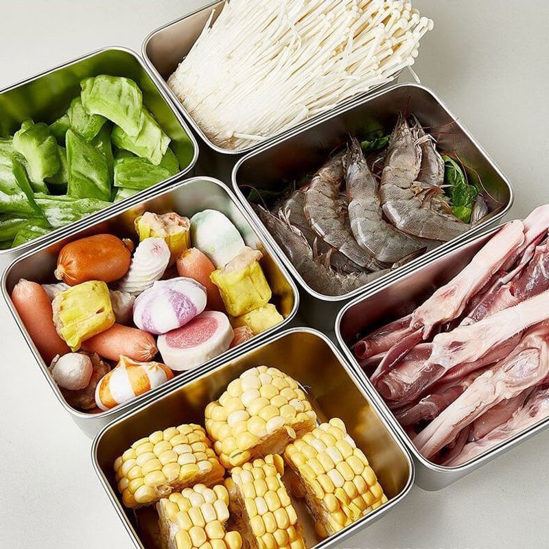 Package includes: 5 x Sorting box with lid Stainless Steel picnic box