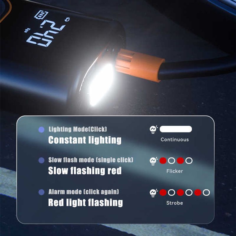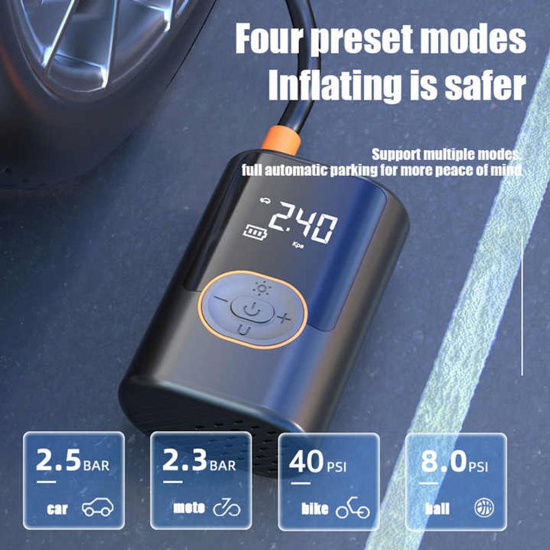 This auto electric air pump is equipped with the latest technology of accurate pressure test chip, accurate pressure measurement gauge is reduce the problem of unstable tire pressure and unstable inflation, give you the most comfortable, fastest inflation effect. Car air pump has 150PSI air pressure, 4 modes to choose with one key, using air pump for car tires, bike tires, motorcycle tires, ball and so on. Travel, camping, go out essential emergency power supply & inflatable tire pumps.