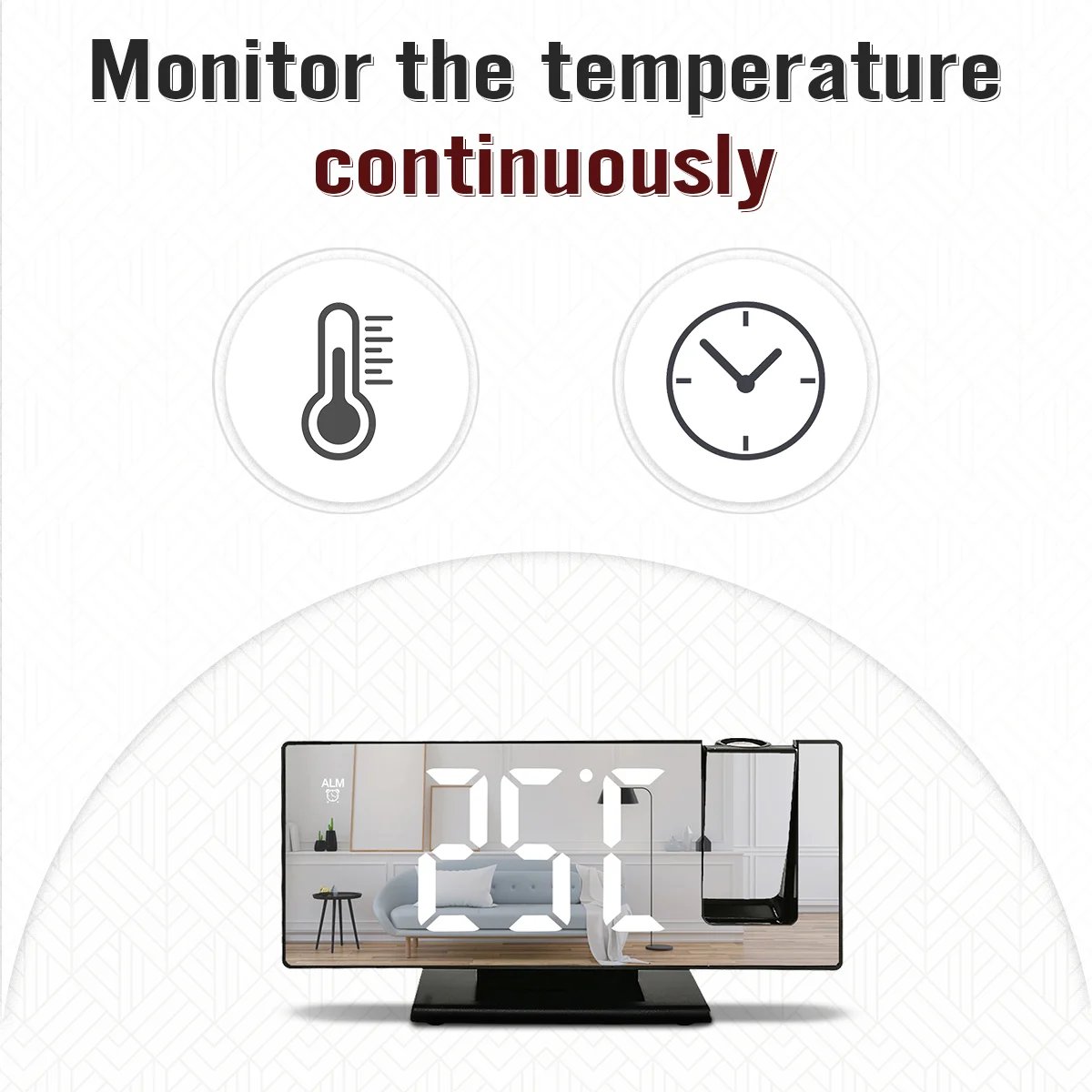 🌟3D Projection Alarm Clock Makeup LED Mirror