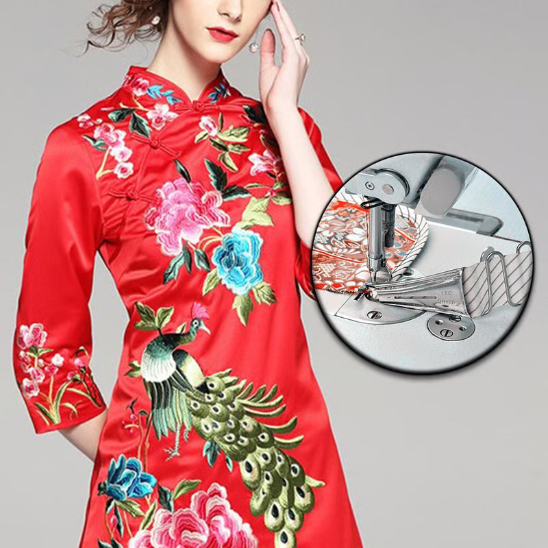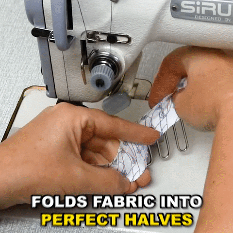 • This binder sets perfectly folded tape material onto the collars, armholes, and bottoms of knit tops.