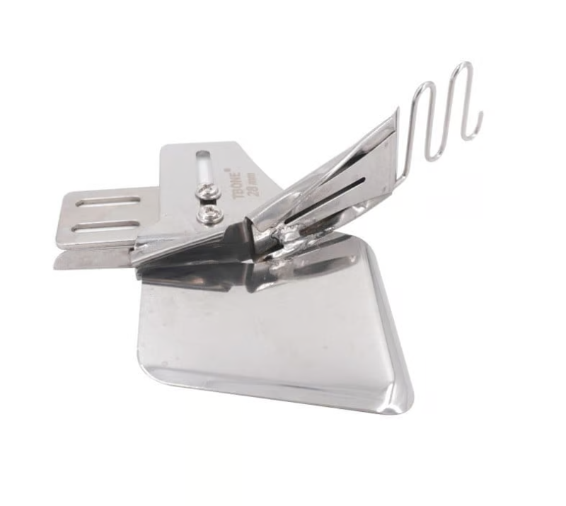 This binder is used to insert bias binding or tape along the edge of the fabric. It folds the tape in half around the fabric then under-folds both top & bottom edges of the binding, making a clean finish top & bottom. Add this on to your sewing projects, you can make bias tapes in minutes! Get creative and enjoy sewing.