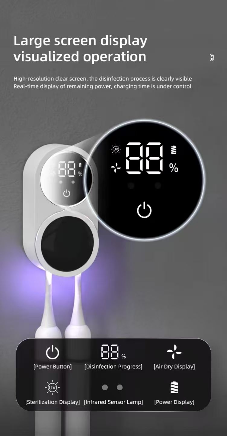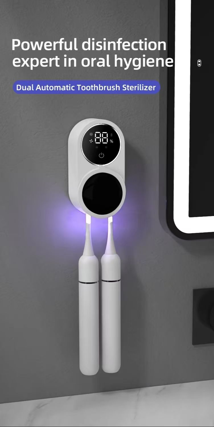 Portable Dual Toothbrush Sterilizer for Sensing UVC Ultraviolet Digital Display